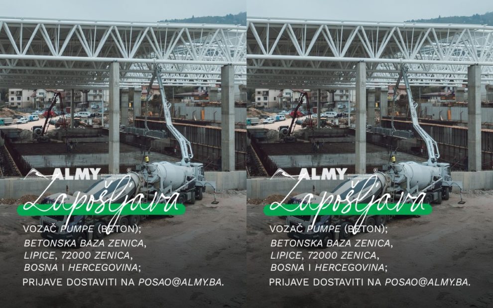 Svi zainteresovani CV mogu dostavi na e-mail: [email protected] sa naglaskom “Vozač pumpe (Beton) – Zenica”