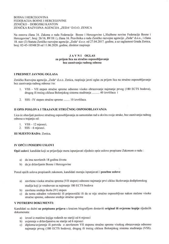 Oglas za stručno osposobljavanje: ZEDA traži pedeset izvršilaca – Agencija ZEDA raspisuje Javni oglas za prijem lica na stručno osposobljavanje bez zasnivanja radnog odnosa i to: