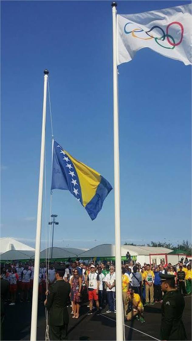 OI Rio: na jarbol podignuta zastava BiH – Zastava Bosne i Hercegovine vijori se u Rio de Janeiru gdje će sutra zvanično biti otvorene 31. Olimpijske igre. Činu podizanja zastave prisustvovli su svi sportisti, treneri i članovi bh. delegacije.