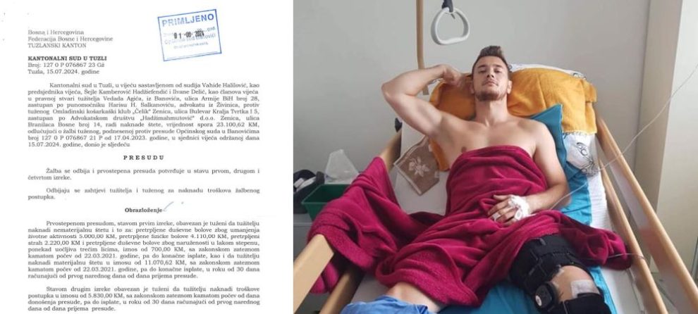 Kantonalni sud u Tuzli donio je konačnu presudu u slučaju koji je potresao bh. košarku. Omladinski košarkaški klub Čelik iz Zenice izgubio je spor protiv bivšeg igrača KK Igman Burch University, Vedada Agića, koji je zadobio tešku povredu tokom utakmice 2019. godine. Klub je sada obavezan da mu isplati odštetu od preko 23.700 KM.