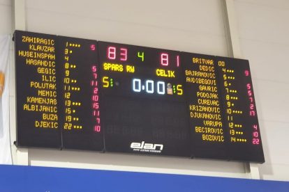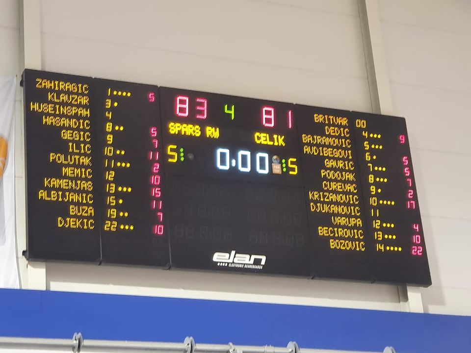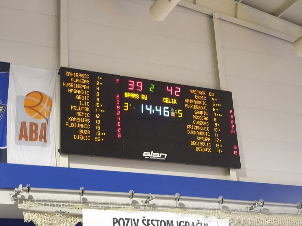 Košarkaši Čelika su odlično odigrali prvu dionicu i rješili je u svoju korist od 26:16. U drugom dijelu druge dionice Sparsi prave seriju od 13:0 i približavaju se vođstvu Čelika na minus tri poena (39:42), što je i rezultat poluvremena. Drugu dionicu su dobili Sparsi sa 23:16. Na kraju treće dionice Sparsi imaju prednost od jednog koša (60:59). Treću dionicu dobili su, ponovo, Sparsi sa 21:17.