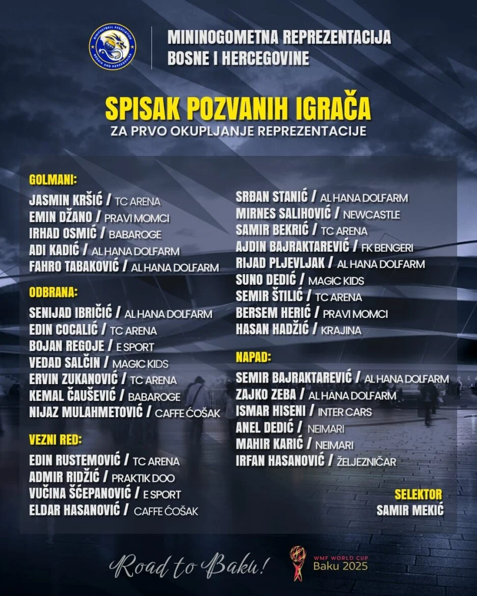Mininogometna reprezentacija Bosne i Hercegovine danas je započela s pripremama za Svjetsko prvenstvo u Azerbejdžanu.