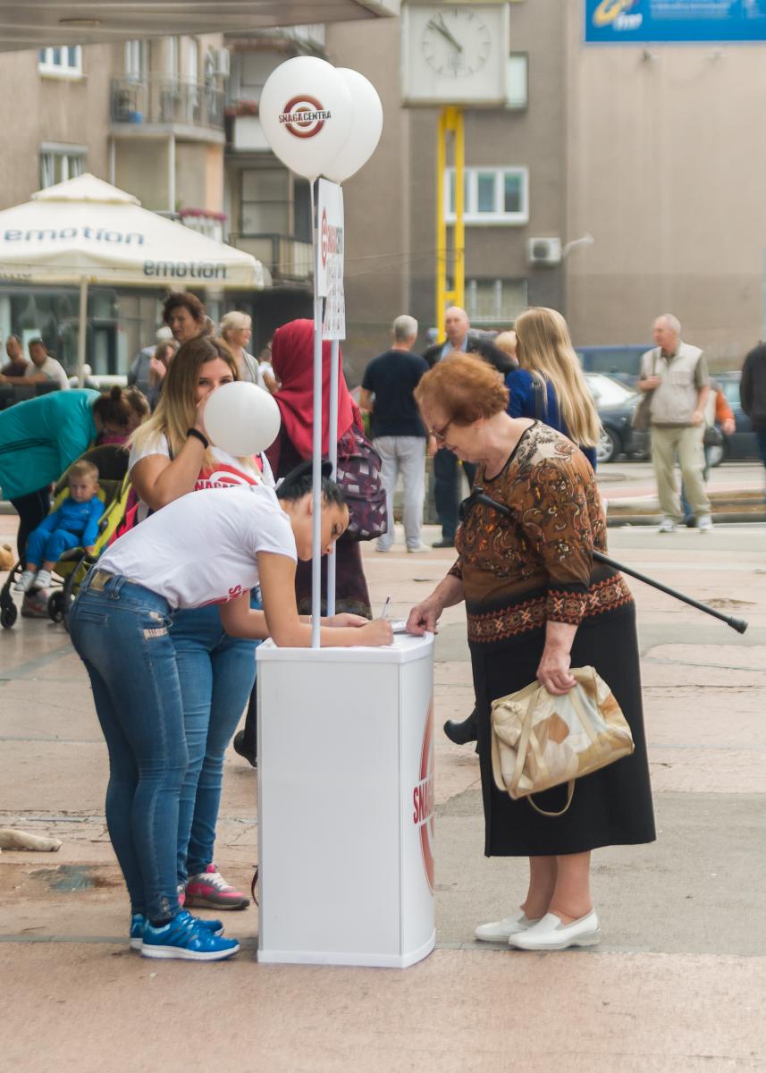 Na promotivnom štandu će vas dočekati mladost sa osmijehom, snagom i vjerom u bolju budućnost. Tom prilikom možete se upoznati sa Programom Snage za 5 – jedinim vodičem za svjetliju budućnost svih građana, kao i sa listom kandidata za gradsko vijeće.