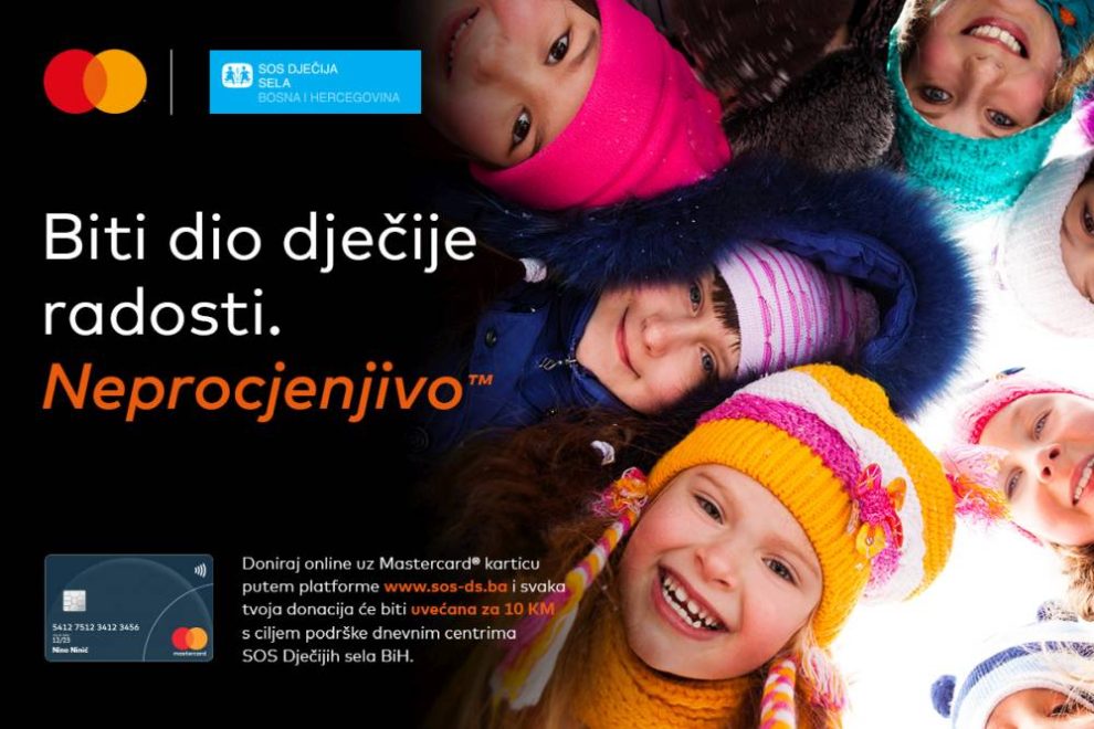 Kampanja “Biti dio dječije radosti. Neprocjenjivo“ koja za cilj ima pomoć radu „SOS dnevnih centara“ traje već više od mjesec dana. Kampanju realizuje kompanija Mastercard u saradnji sa humanitarnom organizacijom SOS Dječija sela u BiH, a uz pomoć svih korisnika Mastercard kartica koji su u proteklih mjesec dana svoje donacije uplatili putem online platforme. Da kampanja pokazuje već sada značajne rezultate, govori činjenica da je tokom januara ova humanitarna organzacija zabilježila porast online donatorskih uplata za 123% u odnosu na prethodni period.