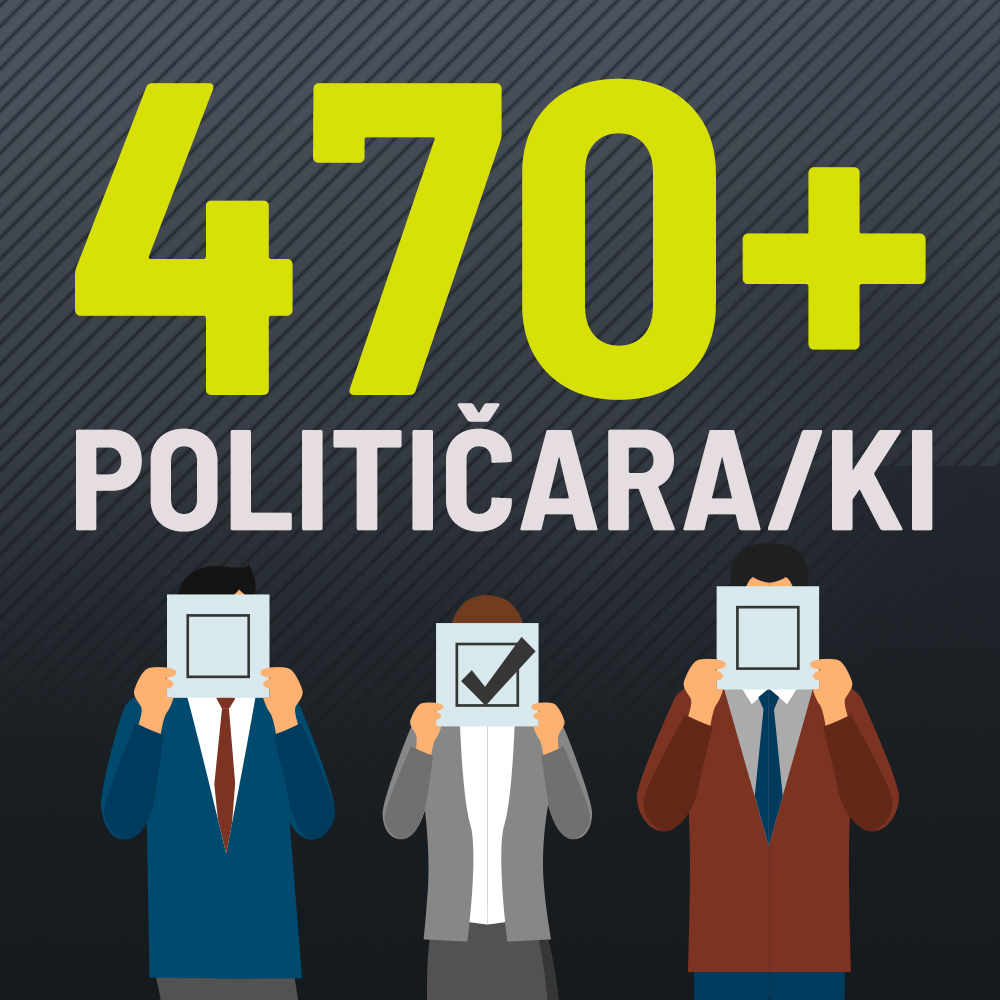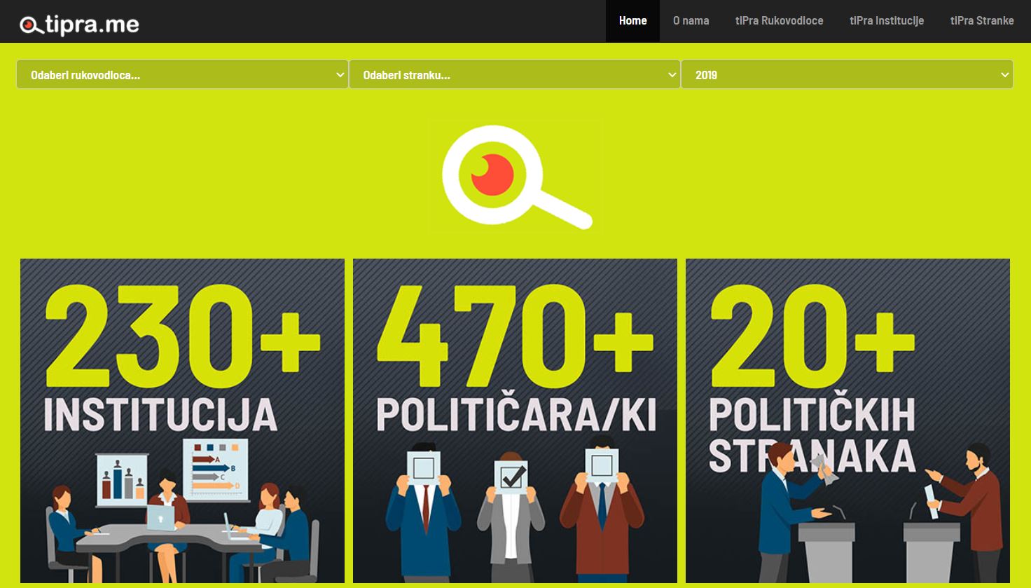 U bazi tiPra.me platforme nalazi se više od 470 političarki i političara, 230 institucija vlasti i 20 političkih stranaka.