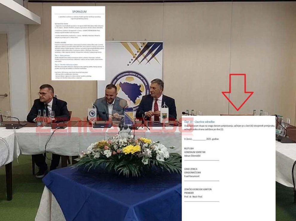 Naime, kako tvrdi više aktera koji su radili na pripremi manifestacije, a što je bilo vidljivo i u samoj sali Trening centra Nogometnog saveza BIH, jedna stolica je bila prazna, a sam tekst Sporazuma, u čiji sadržaj je portal Zenicablog imao uvid, imao je prvobitno tri, a ne dva potpisnika, te je naknadno izmijenjen.