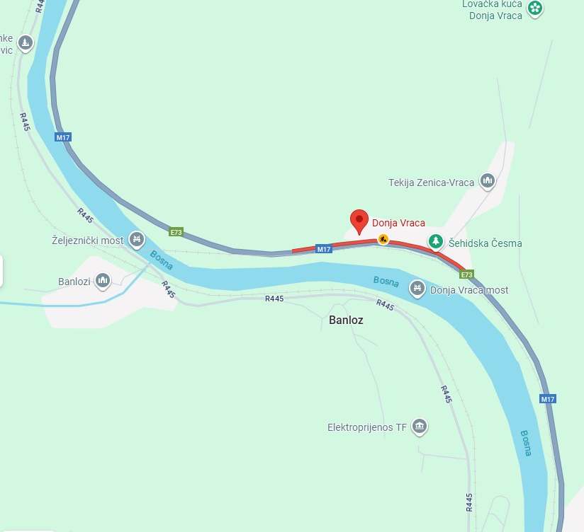 Zbog radova na sanaciji odbojne ograde uz magistralnu cestu M17 Zenica-Doboj (na dionici Donja Vraca-Liješnica) svakog dana (osim nedjelje), u vremenu od 09 do 19 sati, vozila saobraćaju usporeno, naizmjeničnim propuštanjem.