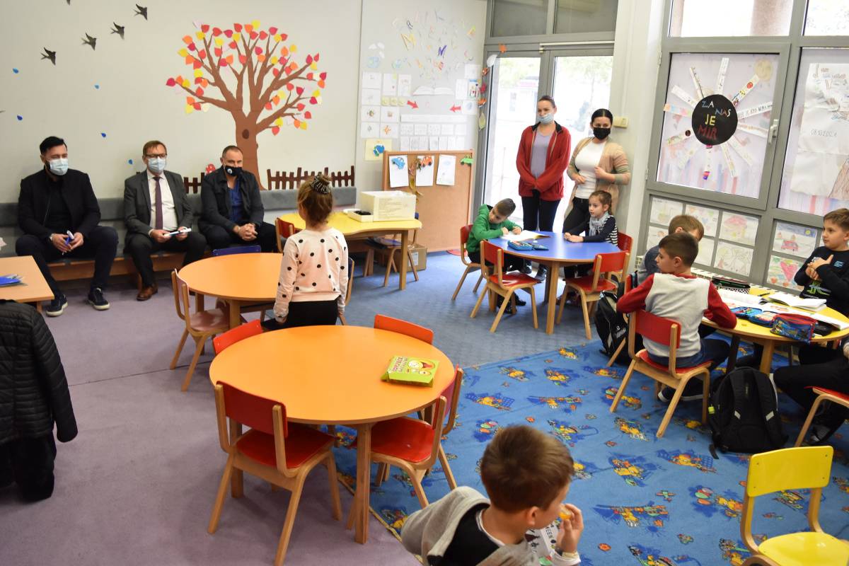 Ministar Kozlić je u pratnji savjetnika Arnela Kalušića se susreo s ravnateljem KŠC-a vlč. mr. Vlatkom Rosićem, direktoricom Osnovne škole prof. Žanom Relota-Rupar i predagoginjom Marijanom Milinović te djelatnicama i djecom u Produženom boravku. Gosti su imali prigodu vidjeti kako izgleda jedan redovni dan u Produženom boravku, kratko porazgovarati s učenicima, čuti prigodnu recitaciju i dobiti simbolične darove djece.
