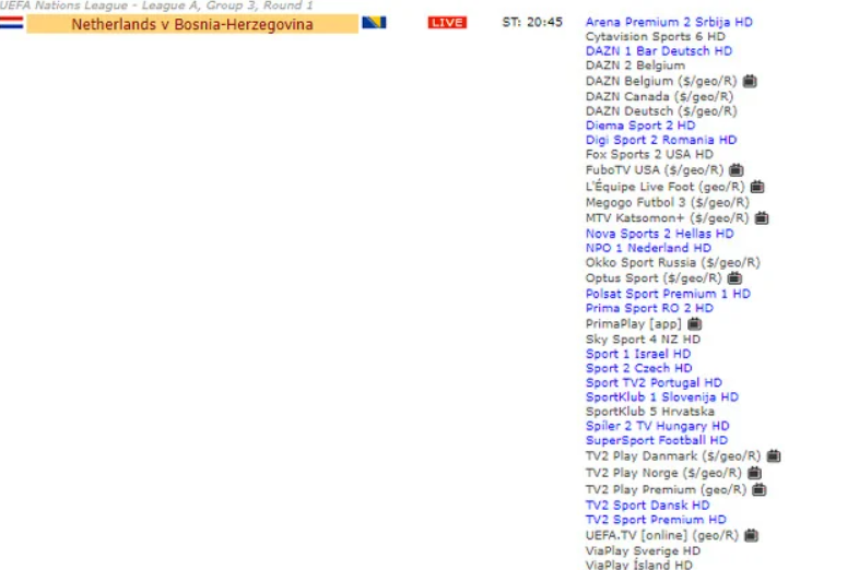 Pored državne televizije, utakmica iz Nizozemske se može pratiti i na sljedećih 38 tv stanica.