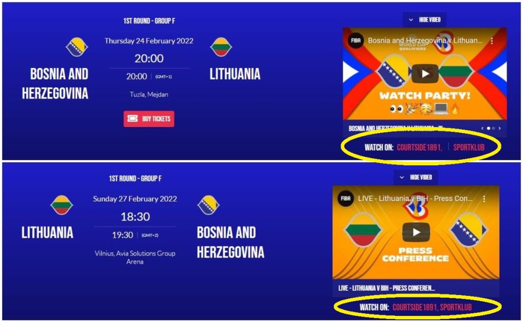 Utakmice će emitovati SportKlub, što je potvrdila i Međunarodna košarkaška asocijacija na svojoj zvaničnoj stranici.
