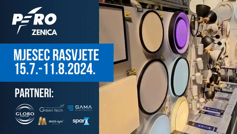 Proširili smo naš odjel rasvjete, pa vas ovog mjeseca u PERO baucentru Zenica očekuju brojne promocije asortimana brendova Green Tech, Globo, Mass Light, Lumia, E-Light i Sparx uz popust od čak 20% na kompletan asortiman brendova u danima promocije.