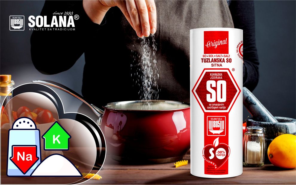 „ So sa smanjenim sadržajem natrija je proizvod dobiven homogenizacijom kuhinjske soli i kalij hlorida. Proizvod po izgledu, ukusu i načinu upotrebe odgovara kuhinjskoj soli. Smanjenje unosa natrija i povećanje unosa kalija jedna je od prvih mjera koje se primjenjuju u lječenju hipertenzije. Kalij je na trećem mjestu po zastupljenosti i veoma važan za prenos nervnih impulsa, održavanje pH organizma, sniženja krvnog pritiska i regulaciju balansa vode, uklanjanje kiseline iz zglobova, smanjenje njihove ukočenosti i smanjenje grčenja mišića. So sa smanjenim sadržajem natrija ne preporučuje se osobama koje moraju da prate unos soli, te je za iste neophodno da prvo potraže savjet doktora“  – navode iz Solane d.d. Tuzla.