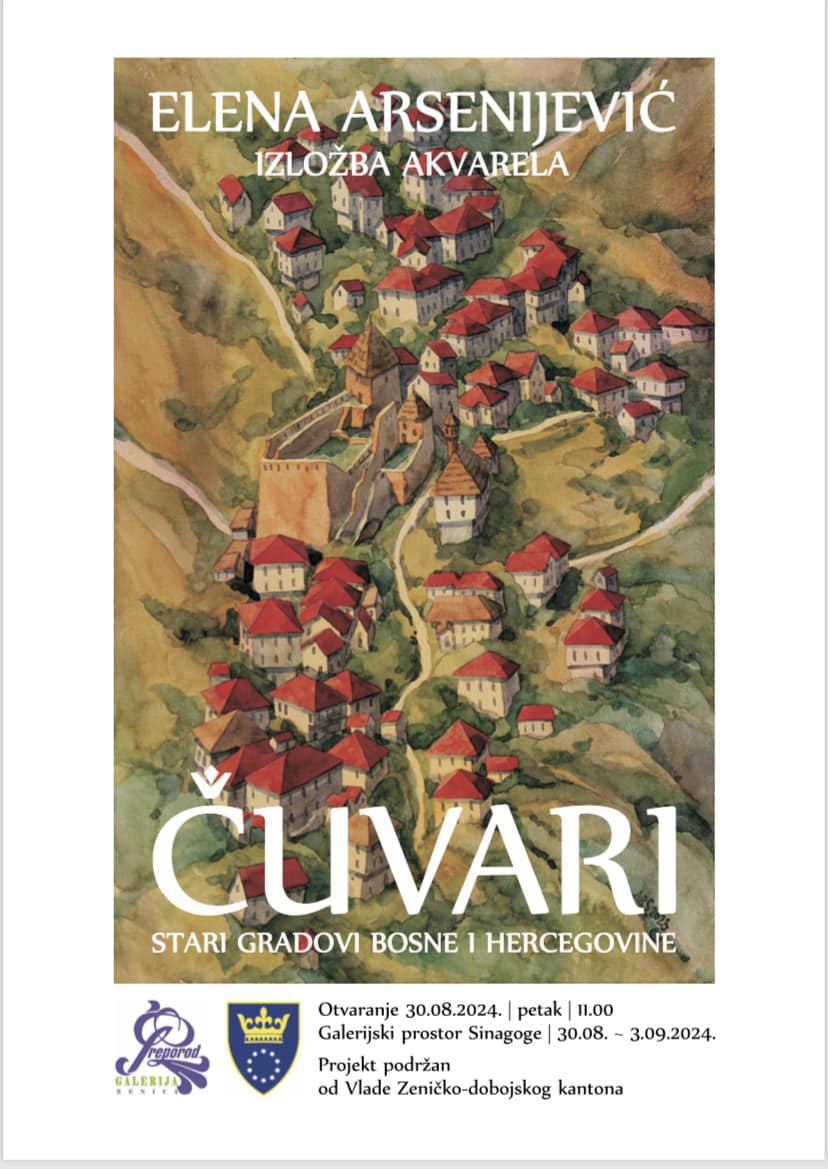 U povodu obilježavanja Dana Zeničko-dobojskog kantona i Povelje Kulina bana, Galerija “Preporod” Zenica je postavila izložbu akvarela „Čuvari“ autorice Elene Arsenijević.