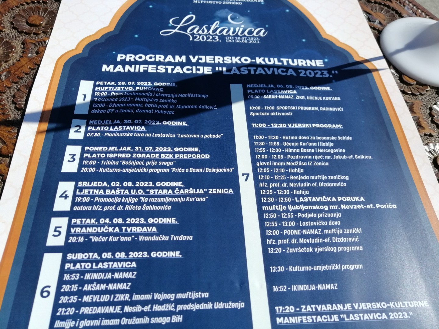 Centralni vjerski program manifestacije je u nedjelju 6. augusta, s početkom u 11.00 sati, uz lastavičke poruke muftije zeničkog hafiza prof. dr. Mevludin-ef. Dizdarevića i muftije ljubljanskog mr. Nevzet-ef. Porića.