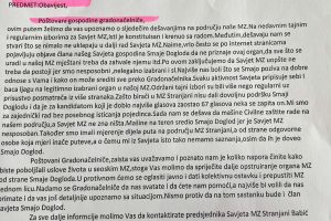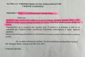 Posebno ističemo da mještane ugrožava klizište koje prijeti zatvaranju riječnog korita, da su nam djeca u svakodnevnoj opasnosti zbog velikog broja pasa lutalica, da su lokalni putevi kroz selo u katastrofalnom stanju, a one koje smo pokušali sanirati donatorskim sredstvima nam je gradska inspekcija zabranila…Ovo je naše posljednje upozorenje na sve što se može desiti, a svakodnevno smo svjedoci blažim incidentima urtokovanim navedenim problemima. Vama na čast gradonačelniče ako i dalje budete ignorisali probleme mještana Stranjana samo zato što Savjet MZ ne čine osobe kod kojih ste često viđeni uz bogatu trpezu I u društvu osoba sumnjivog morala.