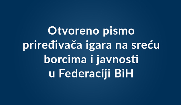 Otvoreno pismo priređivača igara na sreću borcima i javnosti Federacije BiH – Povodom najavljenih aktivnosti Stranke demokratske akcije (SDA), tj. povezivanja Zakona o demobiliziranim borcima sa Zakonom o igrama na sreću i “obećanja” koje SDA daje demobiliziranim borcima da će ih financirati dodatnim oporezivanjem kladionica, priređivači igara na sreću koji posluju na području Federacije BiH izdaju sljedeće: