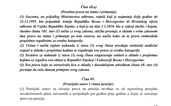 – Zakon o policijskim službenicima BiH je predvidio da se kod određivanja visine penzije uzima prosjek pet najboljih godina. Zatim, Zakonom o službi u Oružanim snagama BiH definirano je da se kod određivanja visine penzije određuje osnovica prema prosjeku plaća u posljednjih pet godina službe – kazao nam je Tomislav Kvesić, portparol Federalnog zavoda PIO.