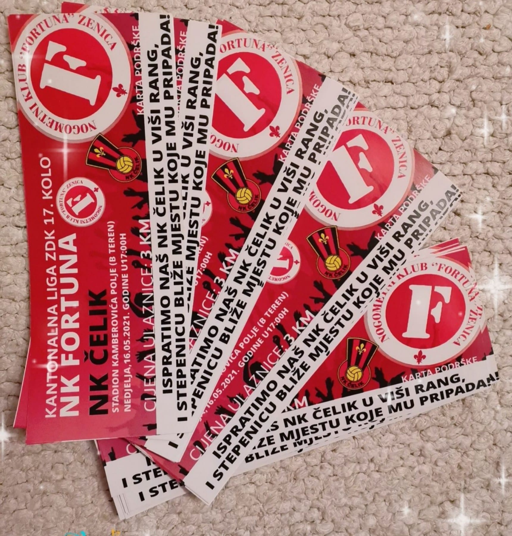 Iz Fortune mole sve navijače koji budu prisutni na utakmici u nedjelju, za jedno fer i korektno navijanje, neka nedjelja bude dan pobjede sporta, nogometa, u Gradu Zenica, uz jednu sjajnu, fer i korektnu utakmicu na terenu, sa puno lijepih poteza i mnoštvo pogodaka. U prodaji su karte podrške za NK Fortunu Zenica, sa posebnom posvetom i čestitkom NK Čelik Zenica. Cijena karata je 3 KM i bit će dostupne kod trenera kluba do početka utakmice u nedjelju. Kupovinom karata podržite ove mlade momke i rad kluba NK Fortuna Zenica.