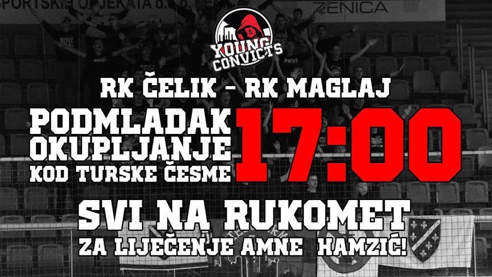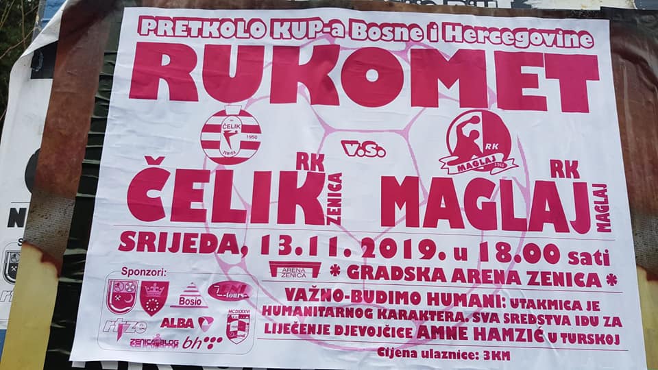 U srijedu, na utakmici godine za RK Čelik protiv RK Maglaj, prikupljamo sredstva za našu Amnu, te kompletan prihod od prodaje ulaznica po cijeni od 3 KM doniramo porodici Amne Hamzić, za pokrivanje troškova odlaska u Tursku.