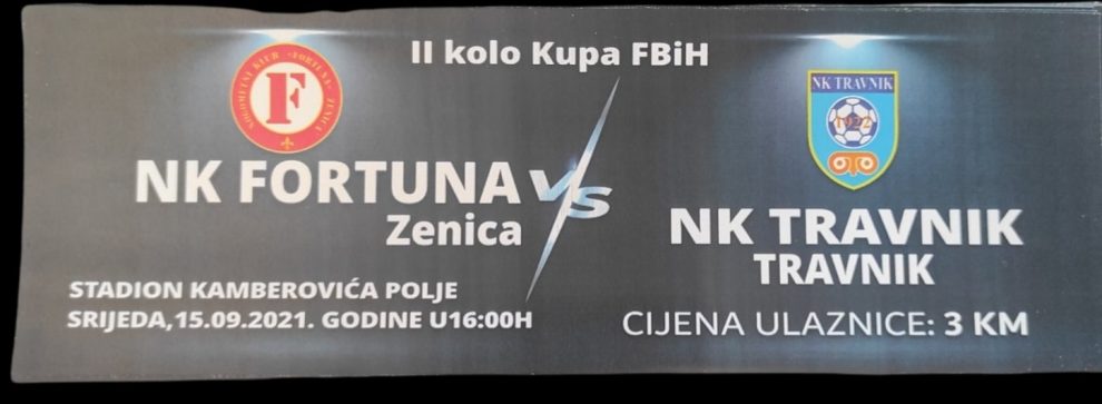 U drugom kolu završnice Kupa Federacije BiH, ove srijede, 15.9.2021.godine, zenički kantonalni ligaš Fortuna je domaćin prvoligašu FBiH, ekipi NK Travnik, koji je na 12.mjestu tabele nakon pet kola.