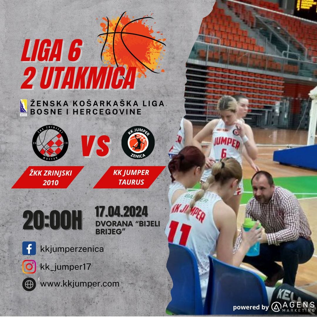 Utakmica u Mostaru, ŽKK „Zrinjski 2010“ – KK Jumper Taurus, na rasporedu je ove srijede, 17.4. od 20 sati u SD „Bijeli Brijeg“. U prvoj utakmici u Zenici, protekle subote, Jumper je pobjedio sa 101:90. Ako Jumper pobjedi u Mostaru, plasirao bih se u polufinale Play offa gdje bih išao na ekipu Lavovi iz Brčkog. U slučaju poraza Jumpera u 2.utakmici, treća utakmica bi se igrala u Zenici.