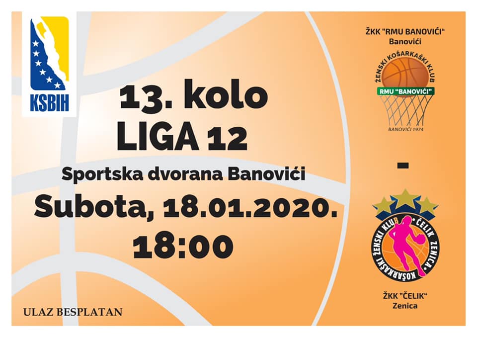 Nakon ubjedljive pobjede u prošlom kolu u Tuzli nad Jedinstvom Dženex ( 71:99), zeničke košarkašice, KŽK Čelik, gostuju u Banovićima kod aktuelnog prvaka i lidera ovog prvenstva, RMU Banovići, koje imaju svih 12 pobjeda. Zeničanke su treće na tabeli sa omjerom od deset pobjeda, devet uzastopnih pobjeda, dva poraza i 22 boda, što je odličan start ove mlade ekipe, trenerice Aide Kalušić.