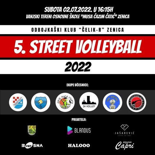 Za predstojeću subotu Odbojkaški klub (OK) “Čelik-R” Zenica najavljuje svoj već tradicionalni, 5. po redu “Street Volleyball” turnir. Ove godine domaćini i organizatori su odlučili da turnir igraju djevojčice koje su rođene 2006. godine i mlađe.