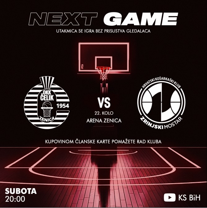 Utakmica OKK Čelik – HKK Zrinjski na rasporedu je ove subote u 20 sati na centralnom terenu gradske Arene „Husejin Smajlović“ u Zenici.