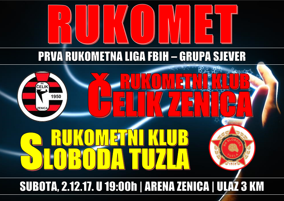 Rukometaši Čelika su domaćini ekipi Slobode Solana iz Tuzle i pokušaće da zabilježe četvrtu pobjedu. Utakmica Čelik – Sloboda Solana igra se u subotu 02.decembra 2017.godine u Areni „Husejin Smajlović“ Zenica sa početkom u 19 sati.