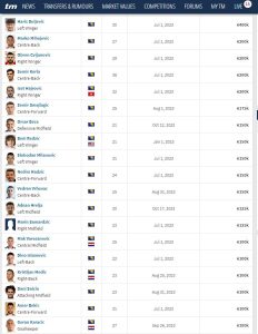 Na listi slobodnih igrača su i Semir Smajlagić (tržišna vrijednost 350.000 KM), Omar Beća (300.000 KM), Beni Redžić (300.000 KM), Slobodan Milanović (300.000 KM), Nedim Hadžić (300.000 KM), Vedran Vrhovac (300.000 KM), Adnan Hrelja (250.000 KM), Mak Varešanović (200.000 KM), Dino Islamović (200.000 KM), Kristijan Medić (200.000 KM), Amer Bekić (200.000 KM), Goran Karačić (200.000 KM)…