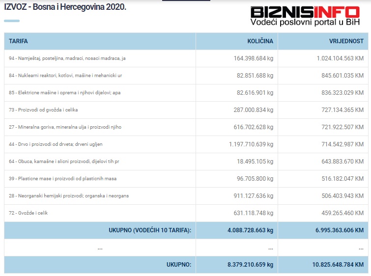 Ovo je najveći izvozni proizvod BiH u 2020.