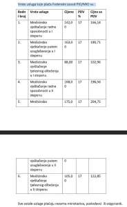 Vrste usluga koje plaća Federalni zavod PIO su: