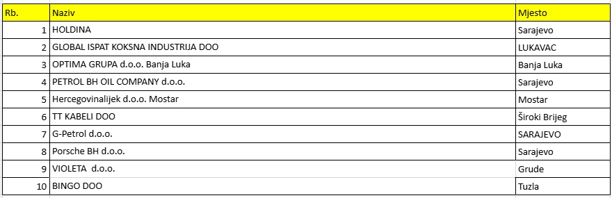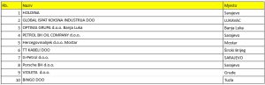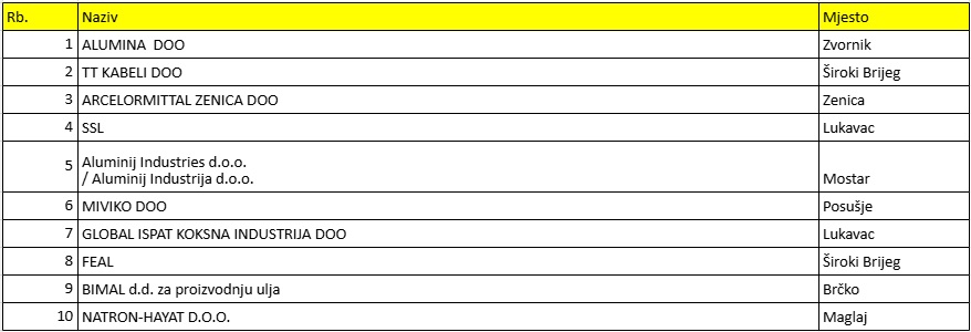 Sisecam Soda Lukavac (SSL) pala je sa druge na četvrtu poziciju, dok je Aluminij industrija napredovala za dvije pozicije na peto mjesto.