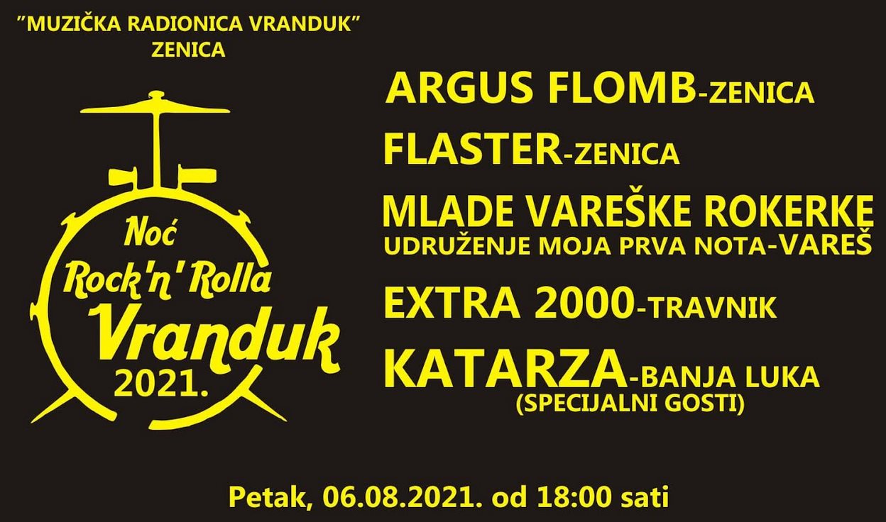 -Sa zadovoljstvom najavljujem 11. po redu ,Noć rock and rolla’ na Vranduku 06. 08. 2021.godine. Pokazalo se da je ovo zasigurno jedan od najljepših događaja u regiji sa puno duše i energije koju nosi sam ambijent i publika, tako da i ove godine očekujemo veče koje puni baterije do sljedeće godine.