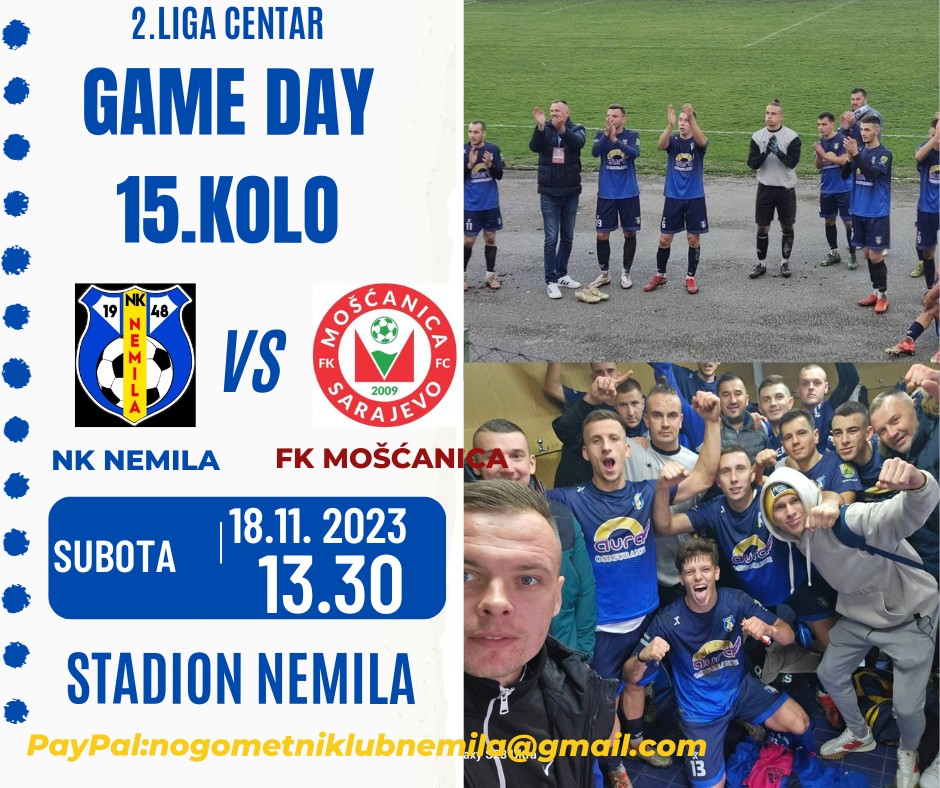 Novi drugoligaš NK Nemila iz istoimenog mjesta, trenera Aidina Mahmutovića, u 15. kolu je domaćin ekipi FK Mošćanica iz Sarajeva, koja se nalazi na 7.mjestu sa 22 boda (7 pobjeda, 1 remi i 6 poraza).
