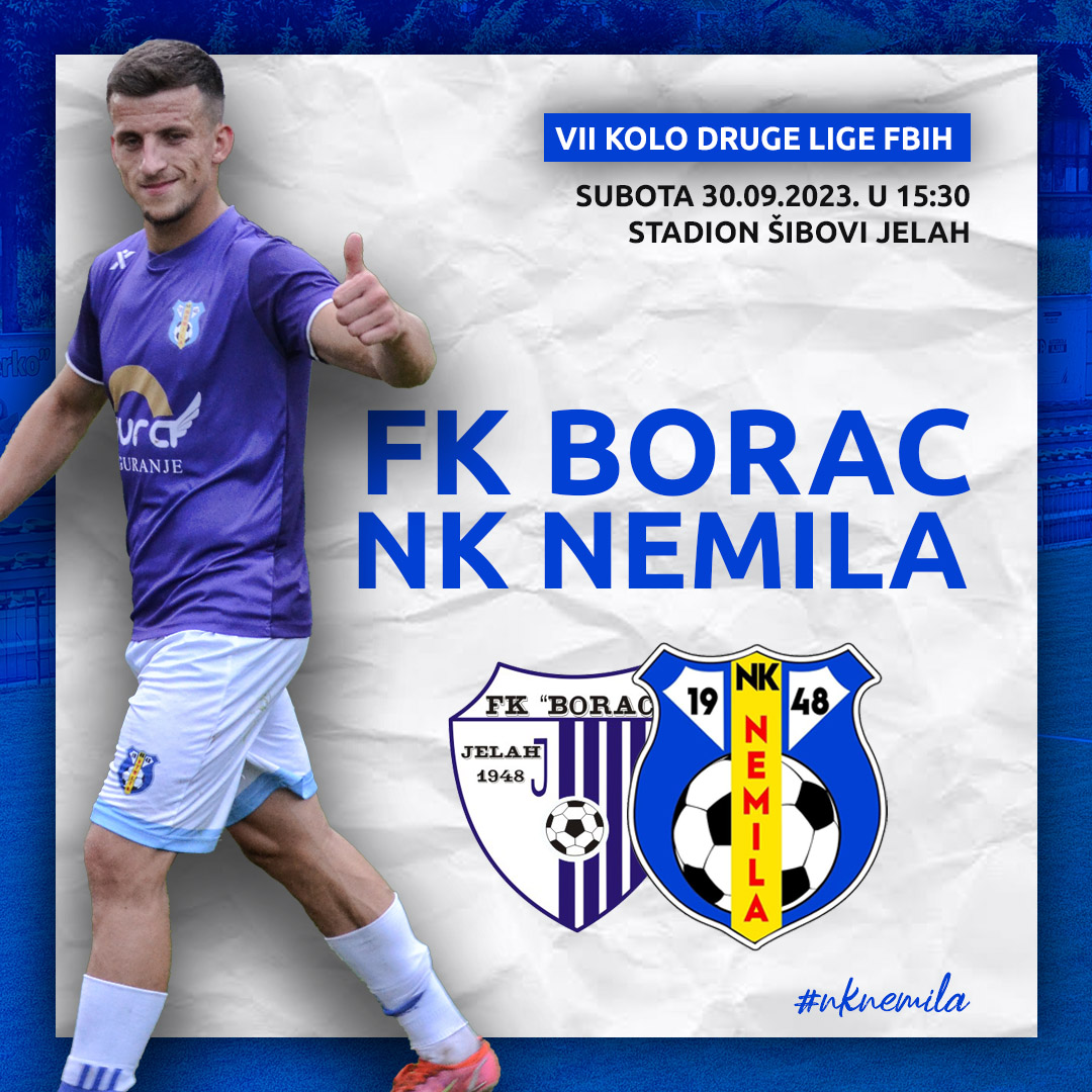 -Na Gradskom stadionu Šibovi u Jelahu sutra nas očekuje zanimljiva utakmica 7. kola između FK Borac i NK Nemila. Jelašani nisu otvorili prvenstvo onako kako su planirali, te će sigurno na ovoj utakmici tražiti tri boda pred svojim navijačima. Naš klub nalazi se na drugoj poziciji na tabeli uz bod zaostatka za vodećim Batonom, te bez kalkulacija ulazi u ovaj susret! –, stoji u objavi NK Nemila.