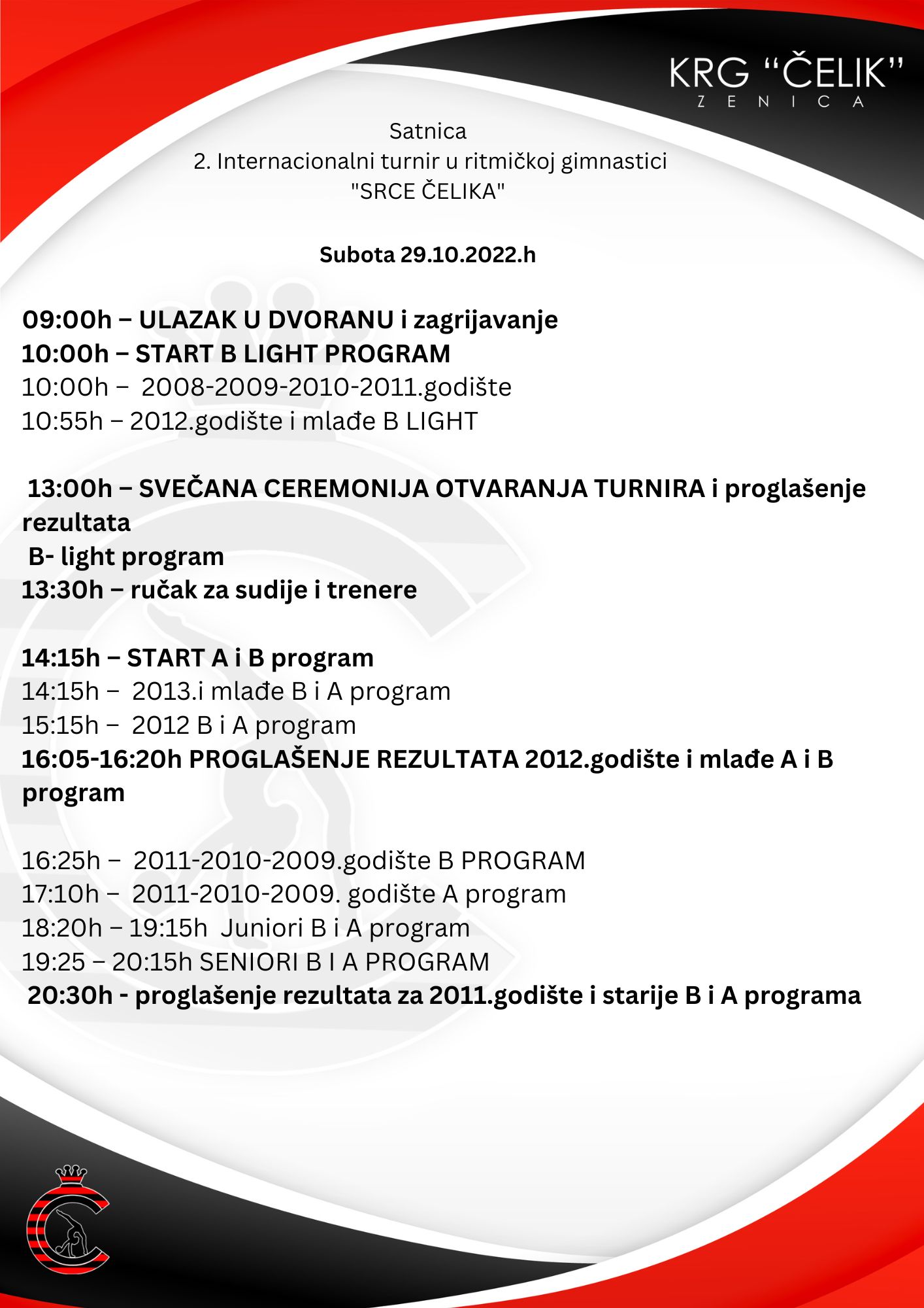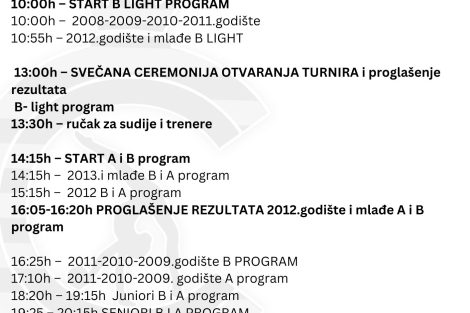 U KOLIKO SATI? – Takmičenje B – Light, B i A individualnog programa će biti u subotu, sa početkom u 10:00h do 21:00h.