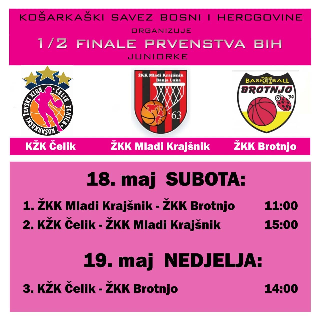 Ovog vikenda KŽK Čelik domaćin polufinala juniorskog prvenstva BiH – Košarkaški ženski klub (KŽK) Čelik dobio je organizaciju polufinala državnog prvenstva u košarci za juniorke. Pored domaćina, KŽK Čelik, na ovom turniru učestvuju i ekipe ŽKK Mladi Krajišnik iz Banja Luke i ŽKK Brotnjo iz Čitluka.