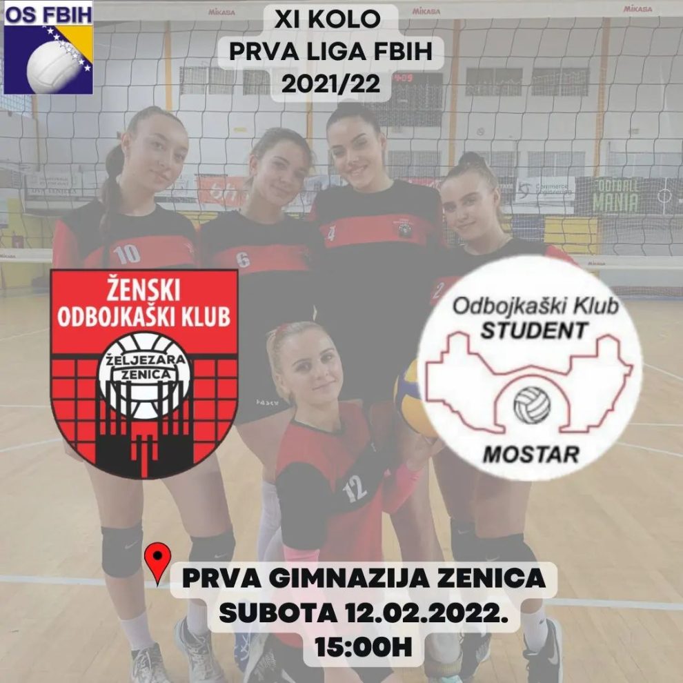 Ove subote, 12.2. od 15 sati u zeničkoj Prvoj gimnaziji, lider na tabeli, ŽOK Željezara je domaćin u 11.kolu Prve lige FBiH, grupa Jug, ekipi Student iz Mostara.
