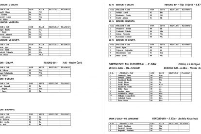 Prema dostavljenom Biltenu, prvog dana na rasporedu su trke na 60 metara sa preponama u svih šest kategorija, a drugog dana discipline skok u dalj i troskok za napred navedene kategorije.