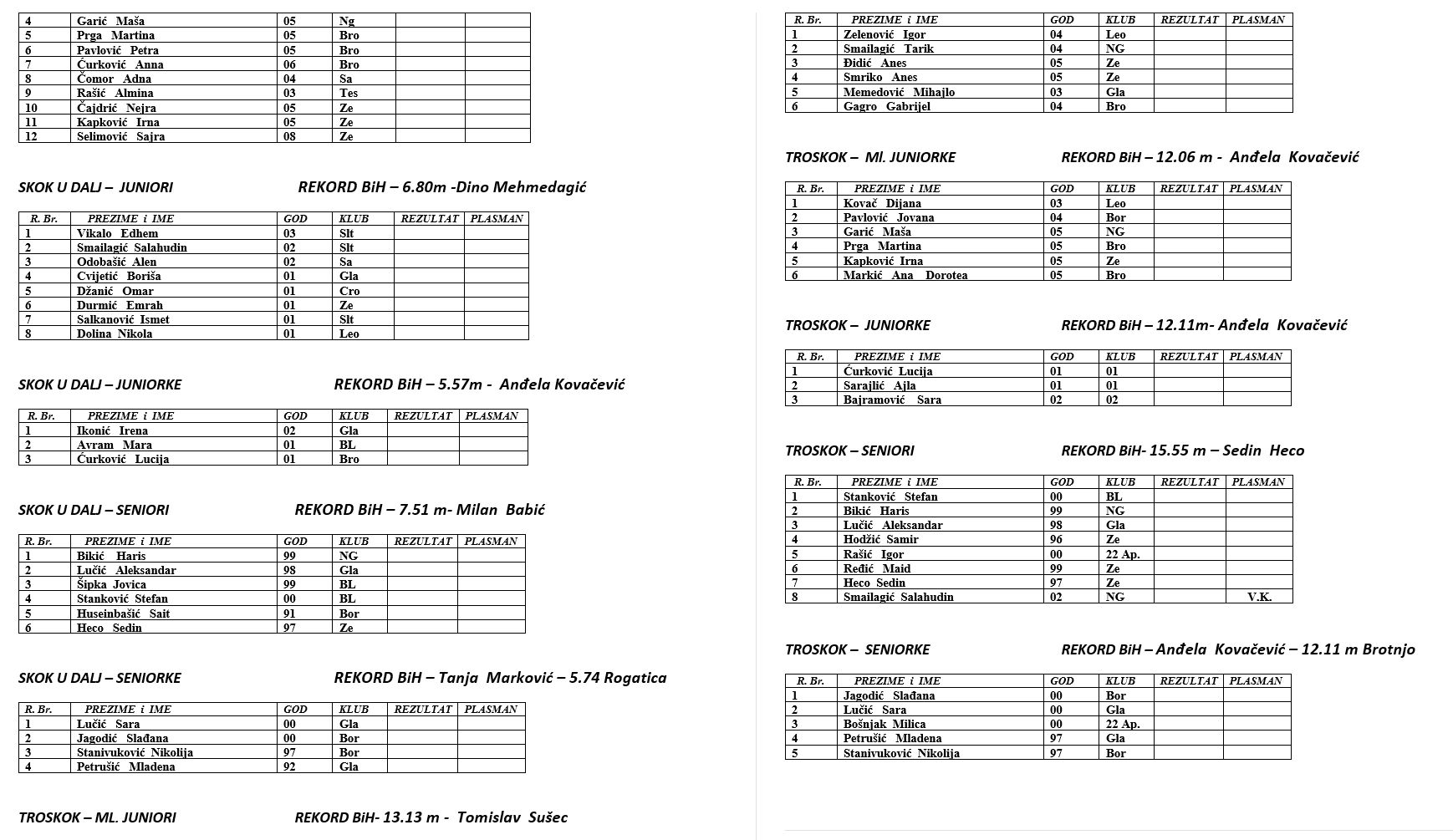Prijavljeno je 20 atletskih klubova iz čitave BiH sa 120 takmičara/takmičarki.