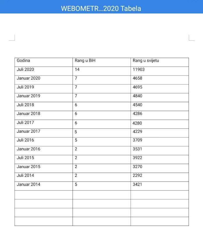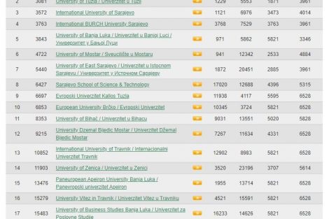 I dok se javni Univerziteti iz Sarajeva i Tuzle hvale novim velikim pomakom ka vrhu liste Webometrics, koja rangira univerzitete u svijetu po broju citiranih i publikovanih naučnih stručnih radova, iz Zenice nema pojašnjenja šta se dogodilo.