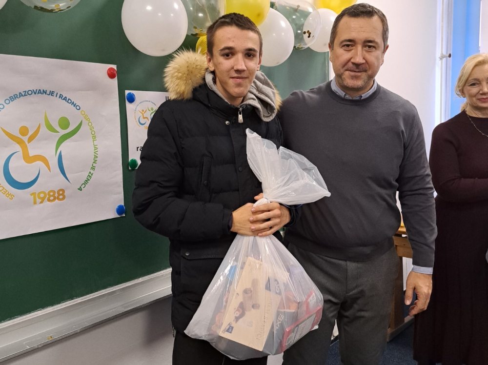Danas je u Srednjoj školi za stručno obrazovanje i radno osposobljavanje Zenica izvršena podjela novogodišnjih paketića za učenike škole od strane kompanije Porsche Sarajevo.