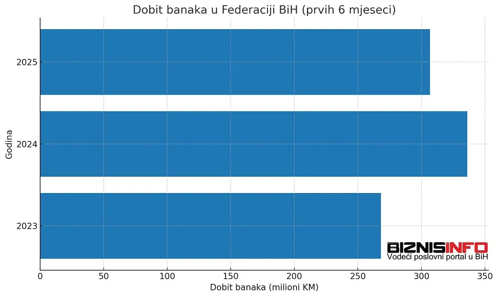 Banke u Federaciji BiH su u prvoj polovini ove godine ostvarile neto dobit od 306,79 miliona KM.