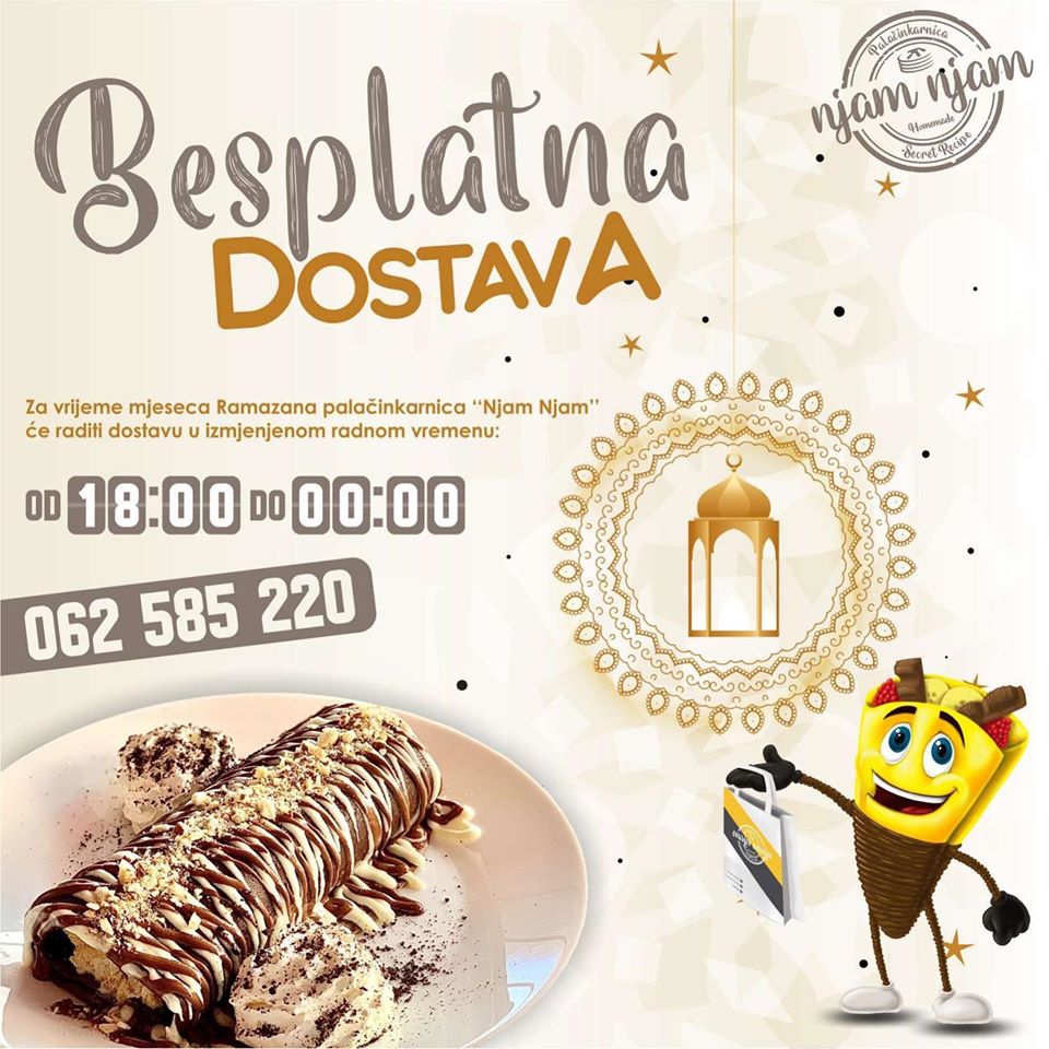 Za vrijeme mjeseca Ramazana palačinkarnica “Njam Njam” će vršiti dostavu i šaltersku prodaju u izmjenjenom radnom vremenu!