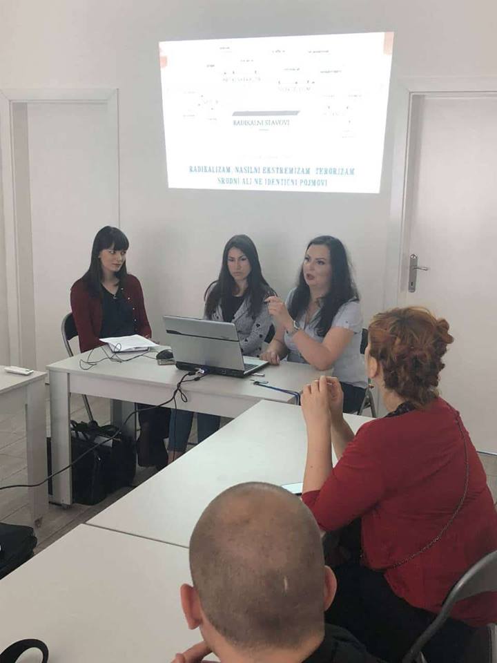 Panelistice Hana Imširović, Jovana Amović i Bojana Naimarević, polaznice Instituta za napredno liderstvo u politici (ALPI) prisutnima su predstavile značenje pojmova kao što su radikalizam, nasilni esktremizam i ulogu žena u tim pojavama.