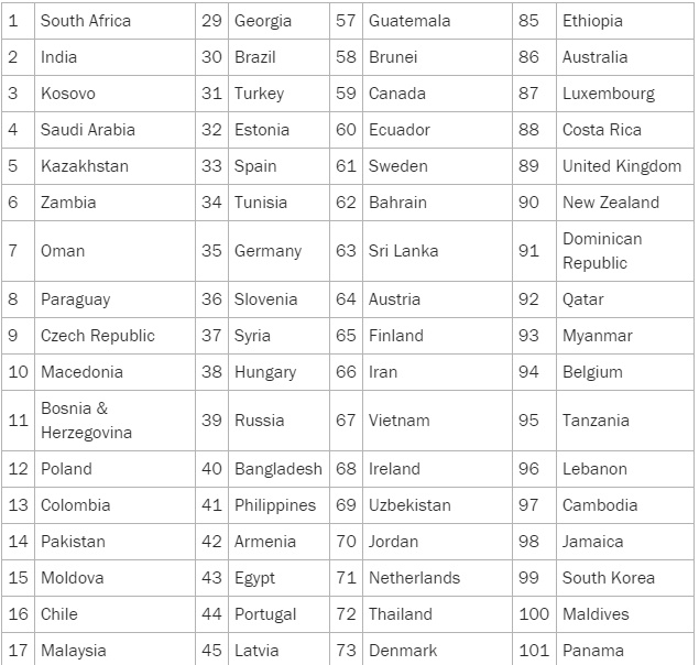 Ovdje je puni rang za svih 112 zemalja koje je anketirala GOBankingRates, od najjeftinijih na broju 1 do najskupljih.