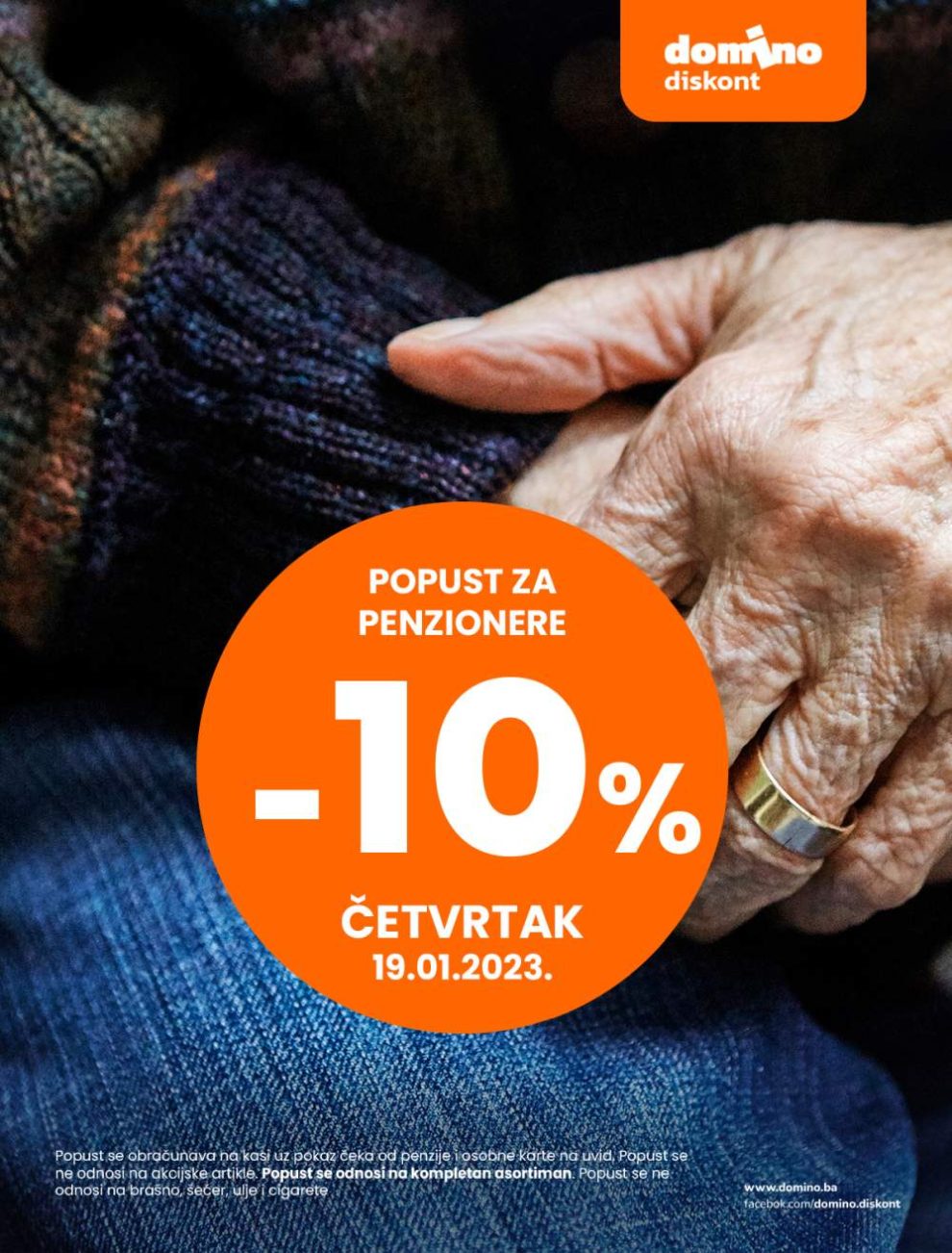 Dragi penzioneri, četvrtak je vaš dan za uštede jer samo u Domino diskontu možete ostvariti 10 % popusta na ukupnu kupovinu. Popust se odnosi na CJELOKUPAN ASORTIMAN.