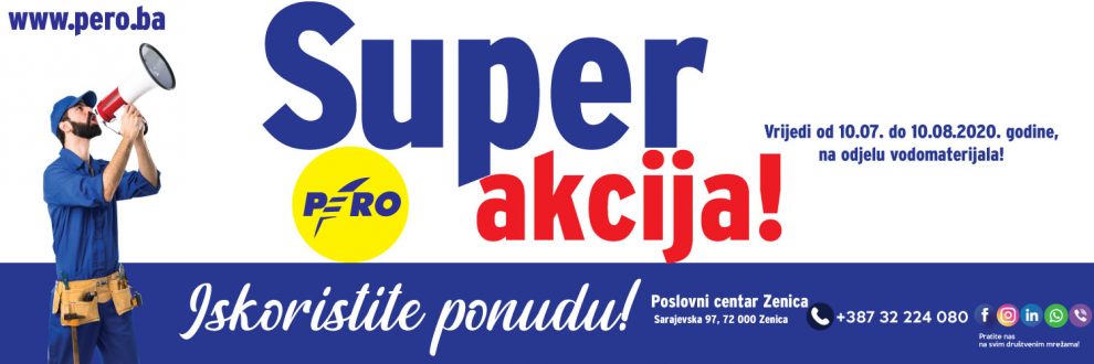 PERO: Ne propustite – akcija na odjelu vodomaterijala! – U svim prodajnim centrima “PERO” Zenica d.o.o. potražite sniženje cijena do 30% na ODJELU VODOMATERIJALA!