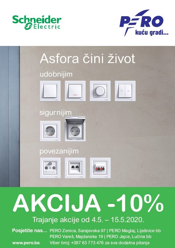 PERO: Sniženje cijena do 10% na asortimanima ASFORA! – Elegantno dizajnirani program sklopki i utičnica, potražite u svim poslovnim centrima “PERO” Zenica d.o.o.!